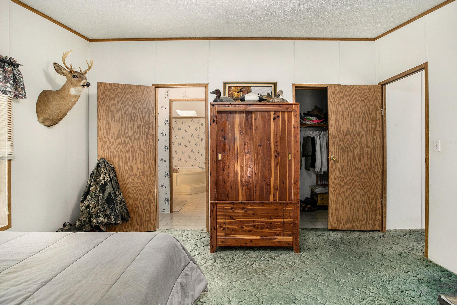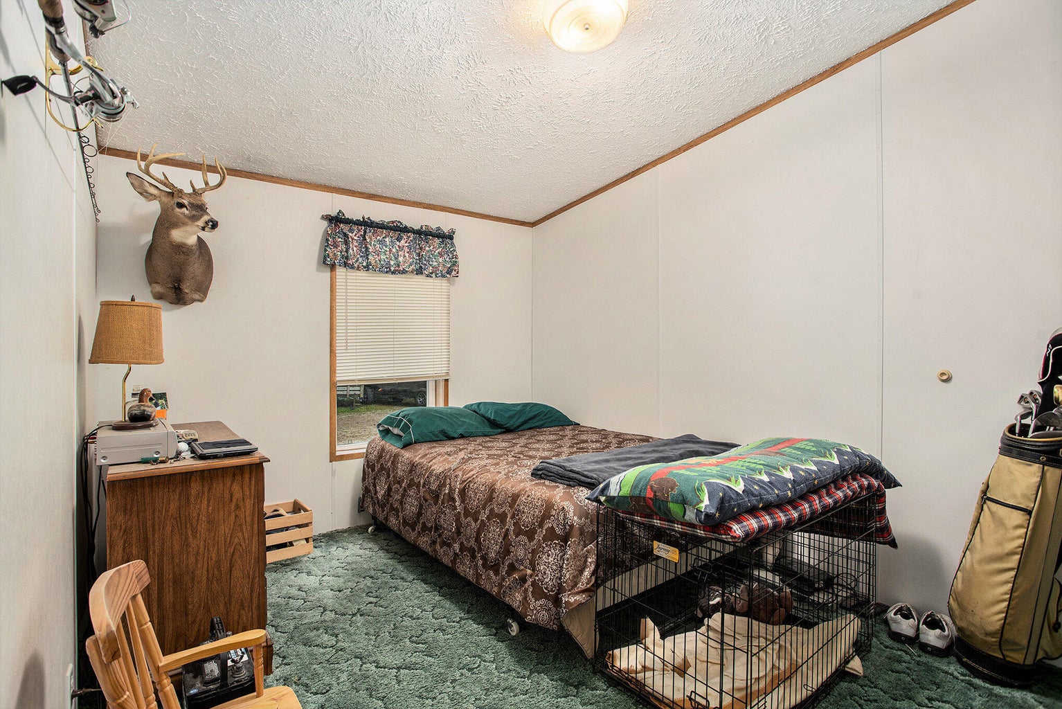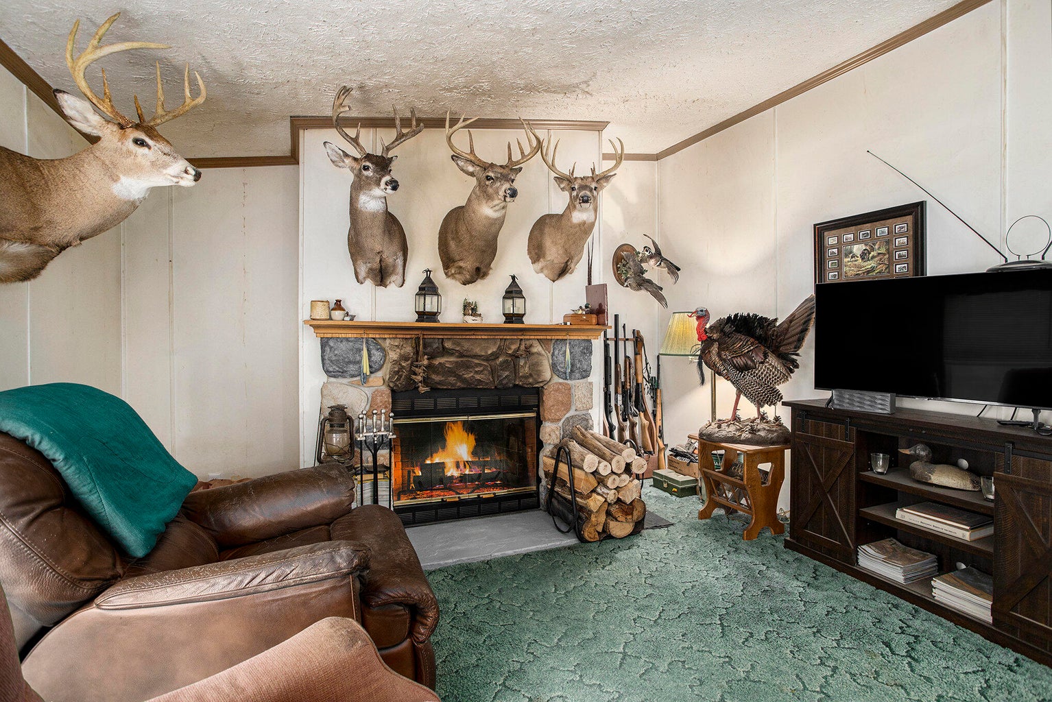 The property includes a comfortable 3-bedroom, 2-bath manufactured home and a spacious pole barn, perfect for storing recreational equipment and gear. A private ½-mile driveway winds through the property, with buried utilities to maintain views and reduce outages. Cellular/satellite internet service is also available.