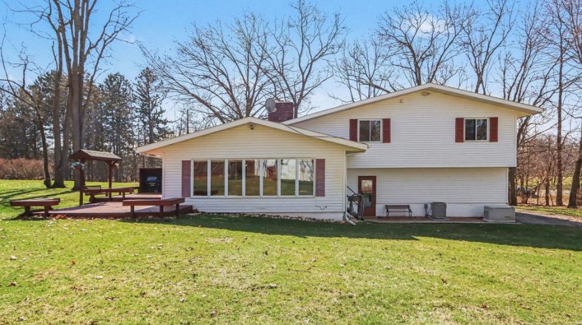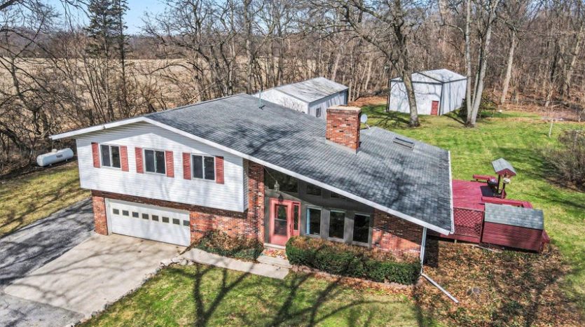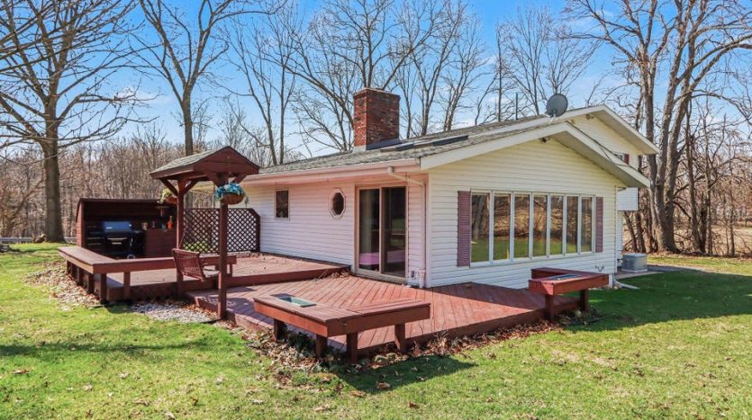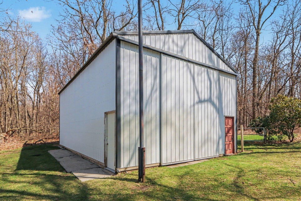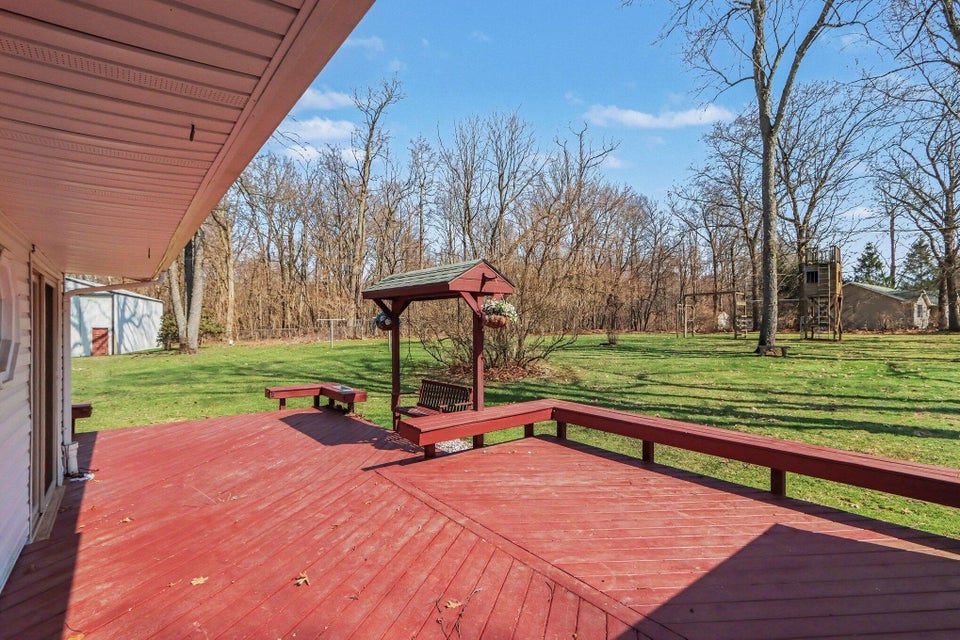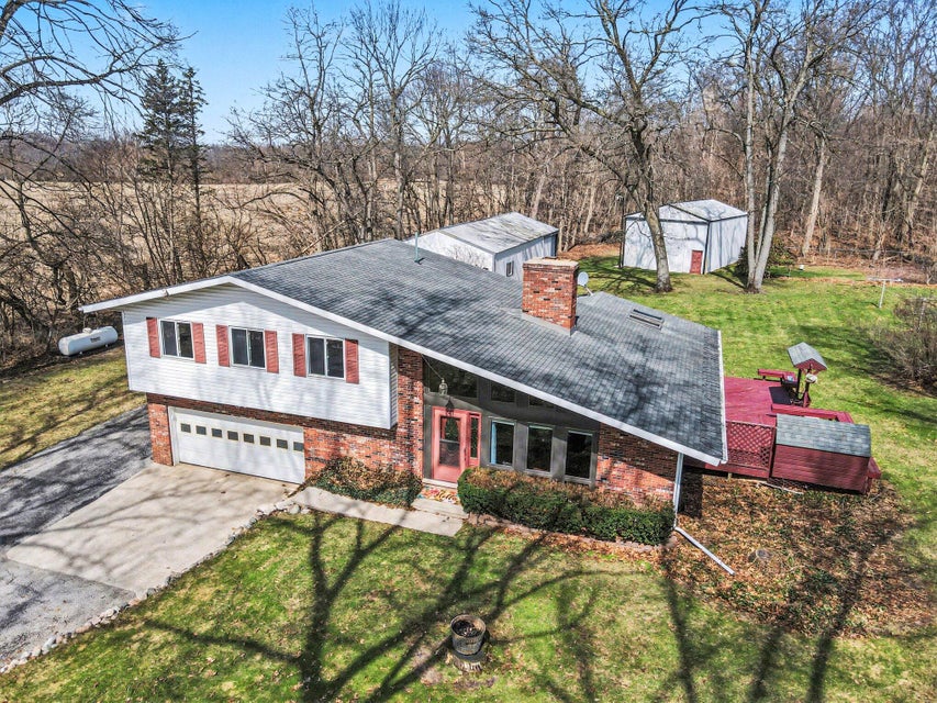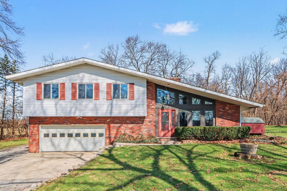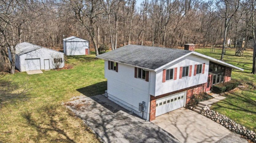 Set on a beautiful 10-acre parcel, this well-maintained 3 BR, 2 full BA home offers the perfect blend of privacy, functionality, and convenience. Ideally located just minutes from West Main/Kalamazoo, Paw Paw, and Mattawan-this property delivers country living without sacrificing access to town. The quality-built home features a bright, light-filled sunroom overlooking the private backyard, complete with a sunken hot tub–perfect for relaxing year-round. Inside, the spacious kitchen offers abundant counter space, a full SS appliance suite, and a cozy eating area highlighted by a see-through wood-burning fireplace that adds warmth and charm to multiple living spaces. The primary suite is thoughtfully designed with a low-threshold shower, a dedicated makeup/dressing area, and two separate closets for ample storage. Outdoors, the property is mostly wooded, offering seclusion and natural beauty, along with trails that could easily be revived for walking, recreation or exploring. For those needing workspace or storage, you’ll appreciate the impressive outbuildings: a 28 x 65 metal barn with electric and concrete floor, plus an additional 24 x 40 metal outbuilding featuring a workshop with electric (AT ONE TIME WATER TOO). There is a also a large play structure in the yard. Additional highlights include WHOLE HOUSE GENERATOR, a roof that is approximately 12 years old. This unique property combines space, versatility, and a prime location–an exceptional opportunity to enjoy both comfort and the outdoors. One owner home has been exceptionally maintained, see it today! Refrigerator in garage will stay with the home. Seller is exempt from paying property taxes and reserves concrete bench outdoors. Wood stove in basement is in need of a minor repair.