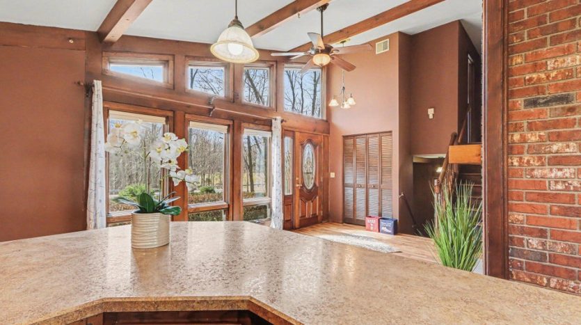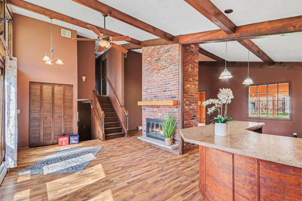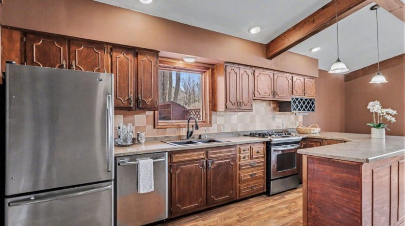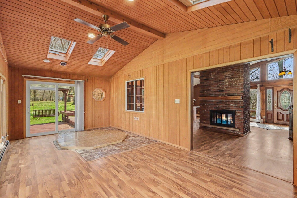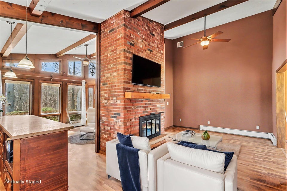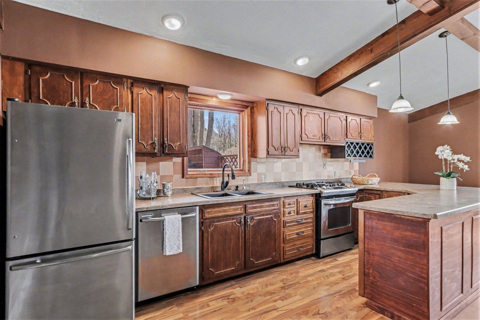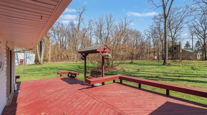 Set on a beautiful 10-acre parcel, this well-maintained 3 BR, 2 full BA home offers the perfect blend of privacy, functionality, and convenience. Ideally located just minutes from West Main/Kalamazoo, Paw Paw, and Mattawan-this property delivers country living without sacrificing access to town. The quality-built home features a bright, light-filled sunroom overlooking the private backyard, complete with a sunken hot tub–perfect for relaxing year-round. Inside, the spacious kitchen offers abundant counter space, a full SS appliance suite, and a cozy eating area highlighted by a see-through wood-burning fireplace that adds warmth and charm to multiple living spaces. The primary suite is thoughtfully designed with a low-threshold shower, a dedicated makeup/dressing area, and two separate closets for ample storage. Outdoors, the property is mostly wooded, offering seclusion and natural beauty, along with trails that could easily be revived for walking, recreation or exploring. For those needing workspace or storage, you’ll appreciate the impressive outbuildings: a 28 x 65 metal barn with electric and concrete floor, plus an additional 24 x 40 metal outbuilding featuring a workshop with electric (AT ONE TIME WATER TOO). There is a also a large play structure in the yard. Additional highlights include WHOLE HOUSE GENERATOR, a roof that is approximately 12 years old. This unique property combines space, versatility, and a prime location–an exceptional opportunity to enjoy both comfort and the outdoors. One owner home has been exceptionally maintained, see it today! Refrigerator in garage will stay with the home. Seller is exempt from paying property taxes and reserves concrete bench outdoors. Wood stove in basement is in need of a minor repair.