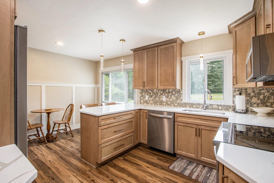 Newly renovated ranch on an acre with a quiet country vibe! Updates include brand-new LVP flooring on main floor and new carpet in finished basement area, a fully refreshed kitchen, stylish bathroom, and a new water heater. Living space includes 3 bedrooms, 1 bath, a bright 4-season sun porch, plus 600 sqft of finished basement rec room for movie nights, play, storage, etc. The backyard offers blueberry bushes, garden potential, and room to roam. Newer mechanicals, central air, lower township taxes, and flexible financing options make this home easy to show and ready to go!